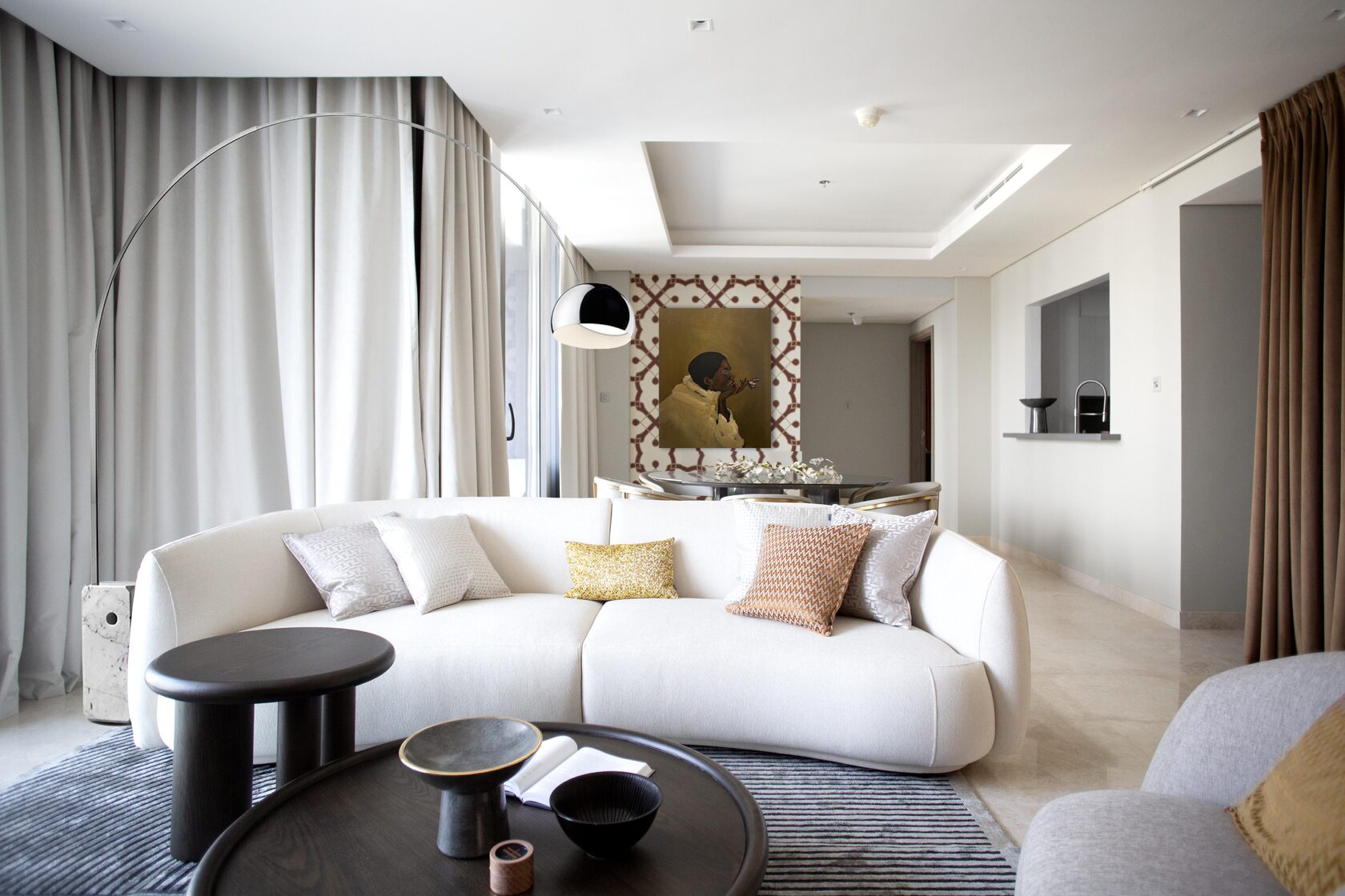 Our team completed the furnishing a winter home for a family with two teenage girls. The apartment, overlooking Burj Khalifa, features four spacious bedrooms. Special attention was paid to service areas to create comfortable storage and laundry zones. The walls in the apartment were repainted with Little Green branded paint, and several units of custom-made furniture were added. All soft furniture was made by a local manufacturer.